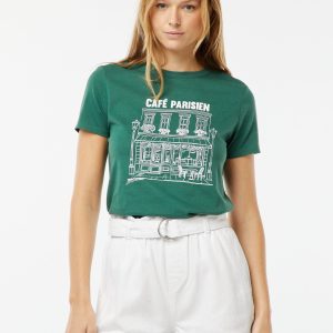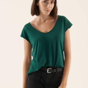 T shirt col V extensible JN928 VERT CITRON femme manches courtes